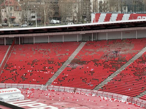 Na južnoj tribini nalazi se veliki broj polomljenih stolica, tribina na kojj su bili Grobari je delimično uništena. Iz kluba su za MONDO rekli da je procenjena šteta od 40.000 evra.