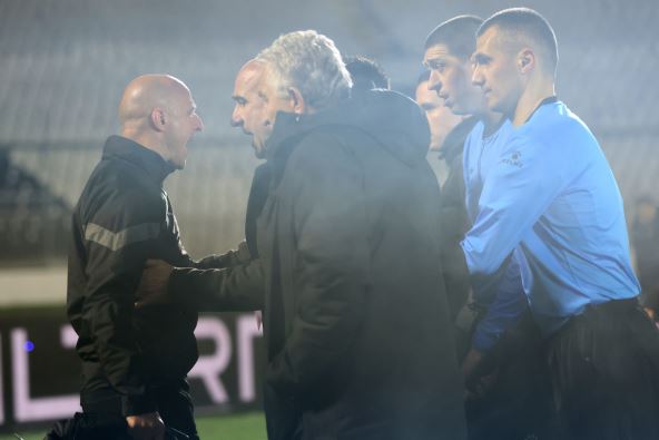 Partizan je izgubio od Napretka, a trener Igor Duljaj je posle meča stao pred sudiju Nikolu Radakovića, besan kao ris! Crno-beli su tokom meča bučno protestovali zbog odluke sudije da ne dosudi penal za Partizan posle duela golmana Napretka Vladimira Savića i napadača crno-belih Nemanje Nikolića.