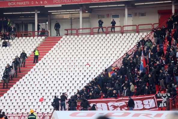 Na utakmici FK Crvena zvezda - Radnički 1923 Kragujevac viđeni su neredi na tribini. Nakon što su navijači gostiju, "Crveni đavoli", počeli da lome stolice i bacaju ih sa tribina, do tog sektora došli su pripadnici Žandarmerije i napravili barijeru ispred ograđenog sektora.