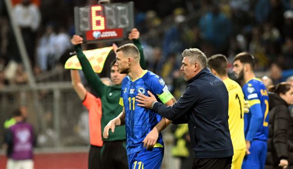 Reprezentacija Bosne i Hercegovine izgubila je od Ukrajine 1:2 u Zenici, u polufinalu baraža za plasman na Evropsko prvenstvo. Iako je tim Sava Miloševića autogolom Mikole Matvijenka vodio od 57. minuta, u završnici je primio dva šok-gola i oprostio se od sna o prvom plasmanu na EURO.