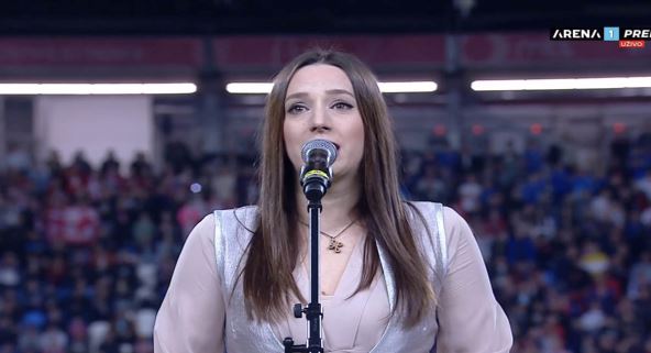 Prvo je otpevala tradicionalnu rusku pesmu "Kaćuša", pa je onda zapevala "Oj Kosovo, Kosovo". Dovoljno za ovacije sa tribina i zajedničko pevanje dve dobro poznate numere. Tu su i navijači gostujućeg tima koji se nalaze na posebnom delu stadiona koji je odvojen samo za njih.