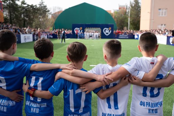 Teren su prvi isprobali pioniri Radničkog iz Niša, koji su pokazali da se šampion postaje i humanim delima. Svi zajedno su igrali za dečaka Kostu Veljkovića, predškolca kome je hitno potrebna hiruško – ortopedska operacija i za koga Nišlije i đaci OŠ „Kralj Petar I“ već neko vreme prikupljaju finansijsku pomoć. Fondacija Mozzart nagradila je svaki gol, asistenciju i svaki dobar potez pionira u današnjoj utakmici i donirala 300.000 dinara za Kostino lečenje.