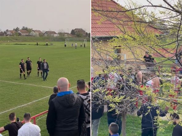 Ljuti navijači u Novom Žedniku okružili su arbitre, koje su fizičkog napada spasili fudbaleri. Pogledajte snimak napravljen sa tribina: