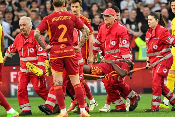 Fudbaler Rome Evan Endika (24) srušio se na utakmici protiv Udineza u nedelju. Meč je bio zaustavljen u 72. minutu i nije nastavljen nakon što je defanzivac kolabirao i pao na travu. Članovi Rominog medicinskog osoblja i službe Hitne pomoći dotrčali su do igrača i delovalo je da je bio svestan kada je iznesen sa terena u Udinama i prebačen u bolnicu.
