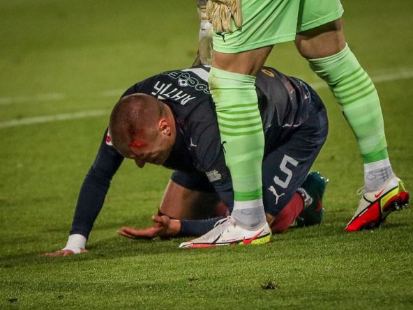 Bilo je dosta krvi na licu borbenog defanzivca Partizana, ali je stegnuo zube i nastavio meč, sa obmotanom glavom. Pogledajte tu situaciju: