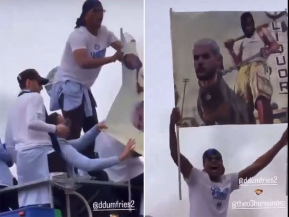 Proslava Interove titule obeležena je i skandaloznim potezom fudbalera nerazura Denzela Damfrisa, koji je raširio uvredljiv baner na račun igrača Milana, Tea Ernandeza. Na toj slici Francuz je predstavljen kao pas, koga Damfris drži na lancu.