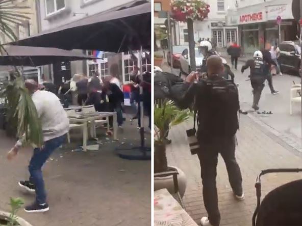 "Srbi, ovo su Srbi. Bežite, bežite", čuje se na snimku koji je objavio Sten Kolimor dok je bio na nekoliko metara od žestokog obračuna navijača. Policija je istovremeno došla na mesto tuče i odmah uhapsila nekoliko osoba.