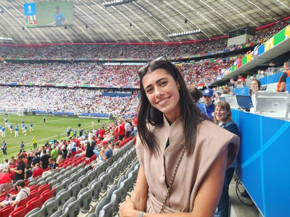 Poznata srpska teniserka Olga Danilović u Minhenu je ovog četvrtka i uživo navija za Srbiju protiv Slovenije. Doduše, njeno srce biće na neki način i podeljeno, jer je golman Slovenaca njen dečko Jan Oblak, ali i zato će ovaj meč njoj biti posebno važan i zato je u gledalištu spektakularnog stadiona "Alijanc arena".