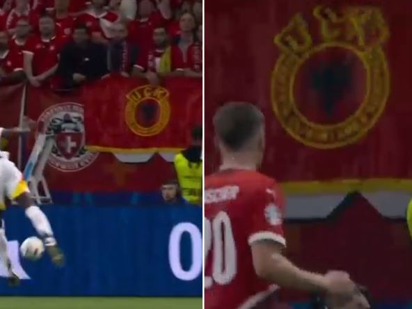 Još jedan skandal na Evropskom prvenstvu u fudbalu! Na utakmici Švajcarska - Nemačka, iza jednog gola u Frankfurtu bila je istaknuta zastava takozvane "OVK" ("Oslobodilačke vojske Kosova")!
