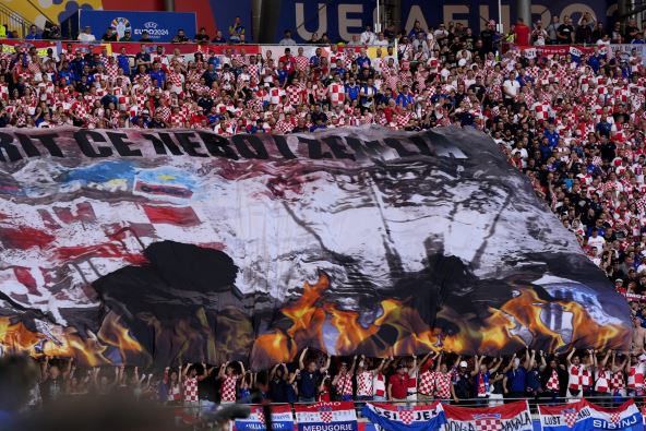 Uoči utakmice Hrvatska - Italija na Red Bul areni u Lajpcigu na tribini gde su navijači Hrvatske izneta je velika koreografija, sa slikom vatre, topova, zastave te zemlje i uz porukom: "Kad krenemo, gorit će nebo i zemlja".
