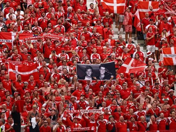 Ipak i danski navijači imaju zastavu koju nose, a koja nije zasstava njihove države. Na svakom Euru može da se vidi, iako ova autonomna oblast želi veću nezavisnost, ima svoju reprezentaciju i želi da se takmiči u severnoameričkoj zoni reprezentativnog fudbala. Pogledajte na sliku, na levi deo tribina i videćete zastavu – Grenlanda!