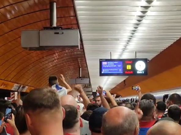 Deo navijača uputio se ka stadionu Bajerna na kojem će kasnije biti odigran meč, a Srbi su smislili kreativan način da "peckaju" rivala. Iako danskih navijača nema mnogo po Minhenu u ovom trenutku, oni koji su se našli u prevozu do stadiona mogli su da čuju povike "Danci, Danci, vi ste ovde stranci". Sudeći po broju navijača na ulicama, to je u potpunosti tačno.