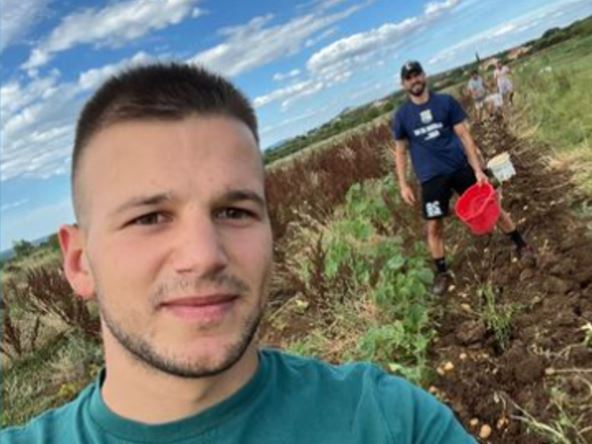 Erlić je snimljen na njivi, odnosno došao je da pomogne svojoj porodici u poljoprivrednim poslovima tokom leta, bez obzira što je iza njega Evropsko prvenstvo. Na njemu Erlić nije odigrao ni minut, tako da mu je ostalo snage da pomogne svojim najbližima koji su imali dosta obaveza u polju. Na jednoj od fotografija objavljenoj na Instagramu, vidi se da je Erlić i te kako angažovan i da se ne boji da uprlja ruke.