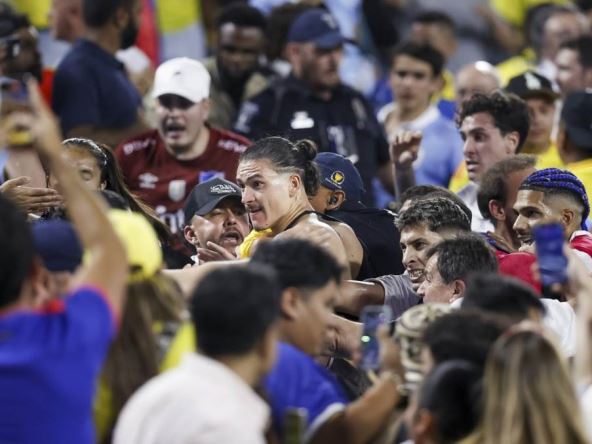 Strašne scene viđene su nakon utakmice Urugvaja i Kolumbiju u polufinalu Kopa Amerike! Nakon što su Kolumbijci upisali pobedu minimalnim rezultatom došlo je do velike tuče na tribinama, a u njoj su učestvovali i fudbaler urugvajske reprezentacije - pre svih Darvin Nunjez koji je zadao i primio po nekoliko udaraca.