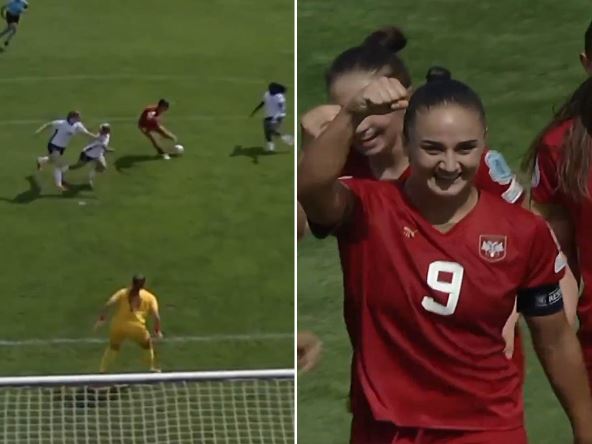 Srpkinja kao Maradona! Prelep gol Nine Matejić postao je viralan na društvenim mrežama. Reprezentativka Srbije je u remiju sa Engleskom (1:1) izvela seriju poteza za divljenje. Uzela je loptu i u stilu legendarnog Dijega Armanda Maradone predribrala nekoliko rivalki i uspela da zatrese mrežu.