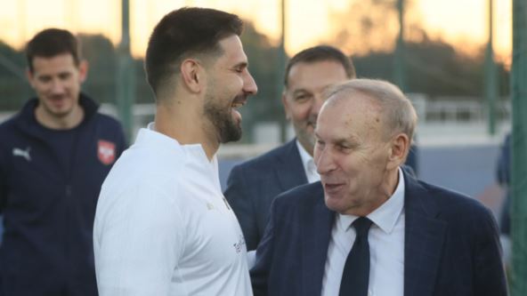 Novi kapiten "orlova" pridružio se ekipi Dragana Stojkovića Piksija na pripremama za mečeve protiv Švajcarske u subotu i Španije u utorak, a pre izlaska na teren srdačno su ga pozdravili čelnici Fudbalskog saveza Srbije.