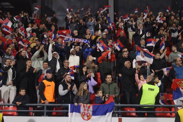 Kako se objašnjava, UEFA je kaznila FSS zbog toga što su navijači u Leskovcu zviždali švajcarskoj himni i istakli transparente o Kosovu i Metohiji