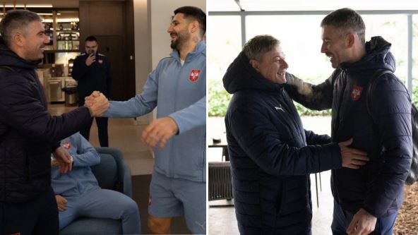 "A" reprezentacija Srbije otputovala je u Švajcarsku na meč Lige nacija zakazan za petak, 15. novembar, a selektor Dragan Stojković Piksi sreo je uoči puta novog selektora mlade reprezentacije, Aleksandra Kolarova.