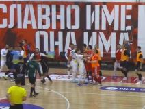 Sve se odigralo u 79. minutu kada je došlo do gužve na tribinama, a kamere su snimile da članovi navijačkih grupa - Čete i Despoti - kreću u lom. Meč je na kratko bio prekinut dok policija nije zauzela položaje i time jasno dala do znanja navijačima da neće dozvoliti nerede.