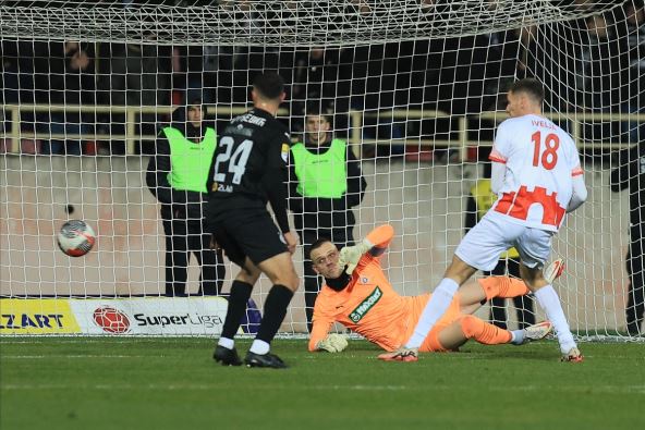 Ivelja je bio najviši u skoku, šutirao je glavom, Jovanović je ostao "ukopan", nije ništa mogao, lopta je završila tik pored stative.