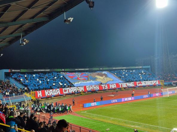 Borac Banjaluka večeras na Gradskom stadionu u Banjaluci dočekuje bečki Rapid u okviru osmine finala Konferencijske lige, a navijači su spremili spektakularnu koreografiju. Videli smo da su Lešinari na severnoj tribini razvili šetalicu na kojoj je navijač koji sanja pehar Konferencijske lige uz poruku: "I kada spavam biću tu na tvome sjeveru".