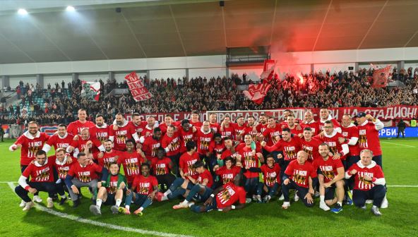 Fudbaleri Crvene zvezde osvojili su petu duplu krunu u nizu, a trofej namenjen šampionu Srbije biće im uručen pred poslednje kolo. Crvena zvezda u subotu od 18:00 dobija pehar, za 19:00 je zakazan meč, a nakon toga i slavlje na ulicama Beograda - kako su saopštili iz kluba, proslava se nastavlja i van stadiona.