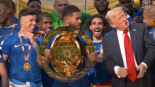 Dok su se igrači Čelsija spremali da proslave osvajanje FIFA Svetskog prvenstva za klubove pobedom protiv Pari Sen Žemena, među njima je bio i predsednik Sjedinjenih Država, Donald Tramp.