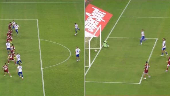 Ipak napadač iz Nigera Isa Đibrila je u nadoknadi vremena izjednačio i poslao meč u produžetke. Ipak "Poljud" je mogao da odahne posle produžetka pošto je Janis Benrahu iz slobodnjaka doneo pobedu, Marokanski vezista je sa nešto više od 20 metara namestio loptu, a onda poslao loptu daleko od čuvara mreže Zire Tijaga Silve. Uživajte u ovom prelepom pogotku: