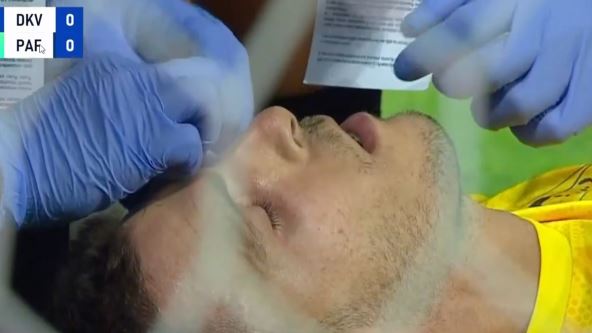 Čekao je zagrejan pored aut-linije Grk Atanasios Teologos Papadudis da uđe na teren umesto prvog golmana Pafosa. Nije ušao i uspeo je Mihail posle pet minuta da se prdigne i meč je nastavljen. Ipak u 89. minutu je meč opet prekinut kada je ponovo Mihail ostao na travi.