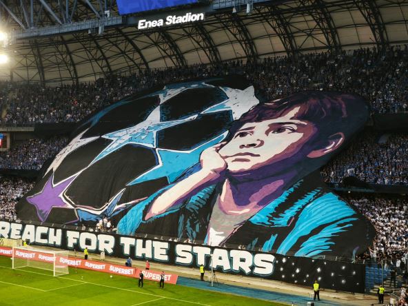 Na crnoj pozadini sa zvezdama pisalo je - "Posegnite za zvezdama". Očigledno su navijači poljskog tima želeli da se poigraju sa imenom Crvene zvezde i da poruče svojim igračima da idu na pobedu. Pogledajte kako je to izguledalo: