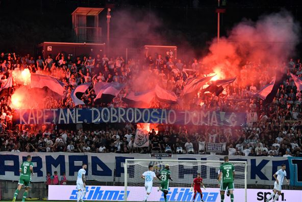 Zbog toga se trener Radomir Đalović izvinjavao navijačima koji su izviždali svoje fudbalere na kraju meča, dok su na početku istakli transparent kojim su obeležili pogrom Srba iz Republike Srpske Krajine - u zločinačkoj akciji "Oluja".