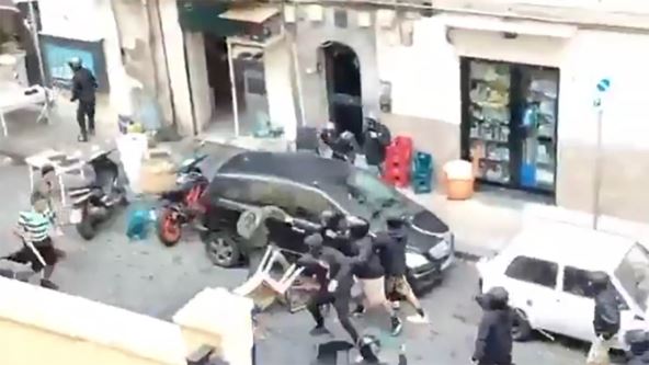 Na drugom snimku možemo da vidimo da su navijači Napolija upali u restoran u kome su bile pristalice Sportinga i "oterale ih", dok se potom sve preselilo na ulice...