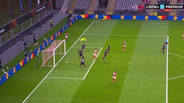 Crvena zvezda gubi od Brage u Ligi Evrope. Srpski tim primio je gol u 23. minutu. Čekala se VAR provera, nadali su se crveno-beli da bi to moglo da ih izvuče, ali se nije dogodilo. Pogodak Frana Navara je potvrđen i moraće da juri minus u nastavku utakmice.