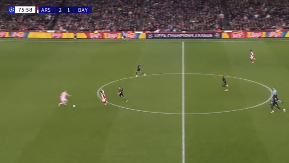 Sve to dogodilo se u momentu kada je Arsenal vodio sa 2:1 i kada je nemački tim napadao i tražio gol za izjednačenje. Dogodila se izgubljena lopta, dodavanje Eberečija Ezea u prostor gde je Martineli jednim dodirom poslao loptu sebi u prostor i nije mu bilo teško da završi napad. Teško da može da se objasni šta je iskusni nemački golman radio toliko daleko od gola.