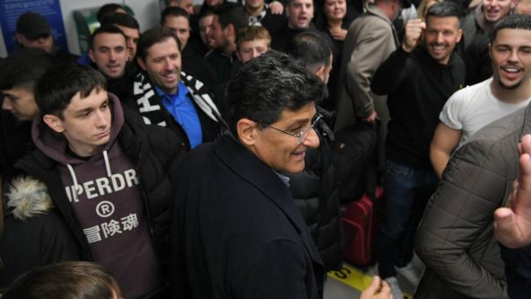 Legendarni fudbaler Crvene zvezde Miodrag Belodedić doputovao je u četvrtak u Beograd i na aerodromu zatekao ogroman broj navijača Partizana koji su čekali Željka Obradovića.
