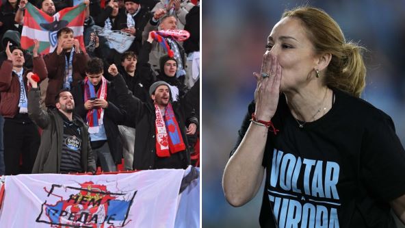 Navijače je oduševila i jedna žena koja se prošetala atletskom stazom i uputila se ka tribini navijača Selte sa zastavom kako Galicije, tako i "Estreljerom" i zastavom "Nema predaje".