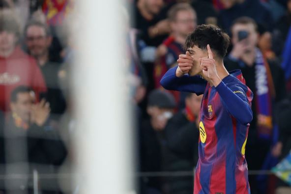 Iako je Barselona raspucano i počela meč i dva puta sticala prednost golovima Rafinje u 6. i Marka Bernala u 18. minutu, krilni napadač gostiju Antoni Elanga poništio je oba vođstva Katalonaca svojim golovima u 15. i 28. minutu, za rezultat 2:2. Kada se činilo da bi na poluvremenu moglo da ostane nerešeno, ipak je Jamal poslednjim šutem u prvom delu meča ipak doneo domaćinu vođstvo.