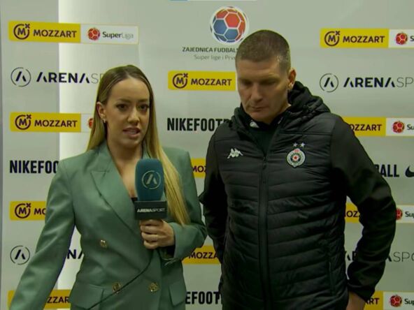 Partizan je stigao do nove pobede u Superligi Srbije, jer je u prvom kolu plej-ofa savladao Železničar iz Pančeva (2:1), a nakon tog meča videli smo zanimljivu situaciju pred kamerama. Iako je inače veoma ozbiljan kada daje izjave medijima, trener crno-belih Srđan Blagojević ovog puta je pronašao prostor za osmehe, nakon što je zbuio novinarku televizije "Arenasport" Dijanu Radulović.
