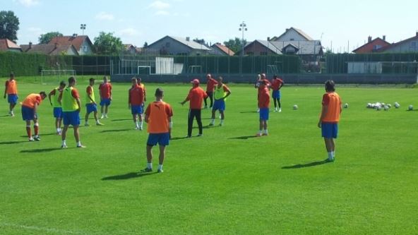 Nakon zagrevanja pod vođstvom kondicionog trenera Vladimira Čepzanovića, Stojanović je igrače podelio u tri grupe i "razvukao" ih u "ševu" na četvrtini terena.