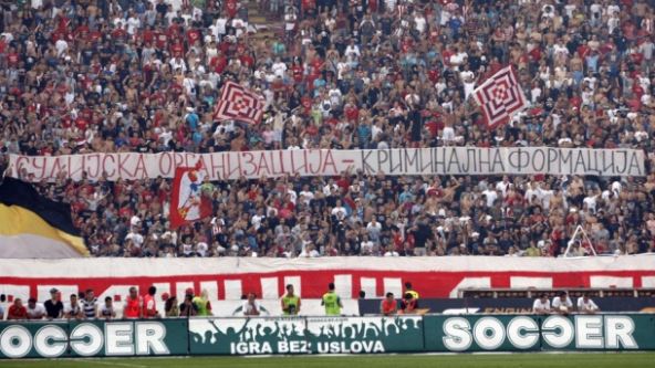 Sudija Milan Mažić čak je prekinuo meč dok transparent nije uklonjen. Usledila je i protestna šetnja do prostorija Fudbalskog saveza Srbije na Terazijama...