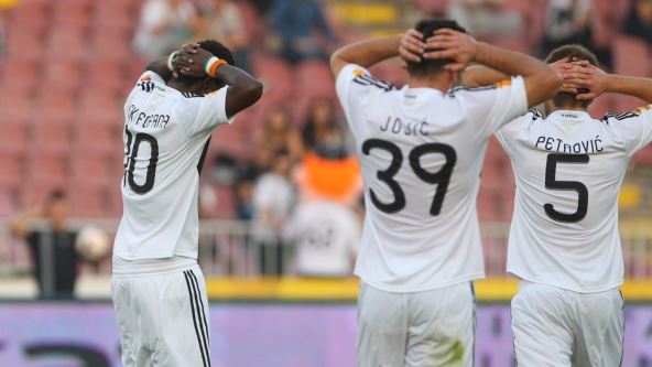 Partizan se na terenu grčevito borio da ne doživi poraz od "čarapana", a na tribinama je nezadovoljstvo navijača bilo upereno protiv čelnika "parnog valjka".