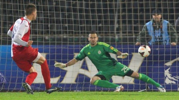 21. minut: Kakva šansa za Vojvodinu! Branislav Trajković je pogrešio, Mijat Gaćinović ga je predbriblao i sa šest metara iskosa je šutirao, ali mu je golman Milan Lukač "ušao" u šut i spasao gol crno-belih.