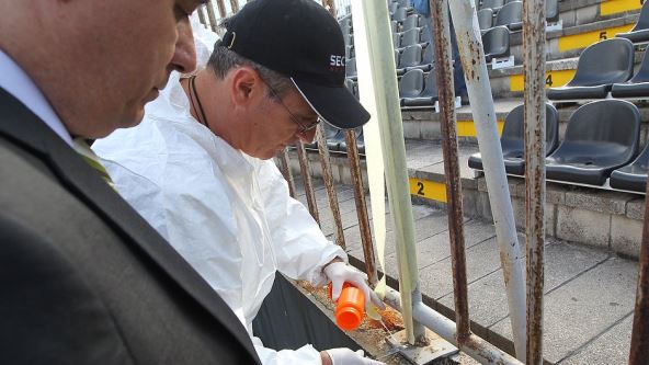 Crno-beli su posle intervencije MUP-a Srbije angažovali stručnjake za uklanjanje lepka, a ceo proces nadgledali su, između ostalih, generalni sekretar kluba Darko Grubor, direktor stadiona Aleksandar Stepanović, komesar za bezbednost Fudbalskog saveza Srbije Milivoje Mirkov i generalni sekretar Zajednice superligaša Branislav Delić.