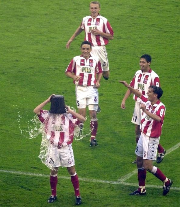 Naime, bivši fudbaler Crvene zvezde Saša Zorić ima pravo da sebe smatra pravim hipsterom i ponosno kaže: "Radio sam to pre nego što je bilo popularno". Na ovoj fotografiji staroj 13 godina, vidi se Zorić kako pogodak u pobedi crveno-belih nad Milicionarom od 4:1 slavi tako što se ispolivao vodom iz kofe po glavi.