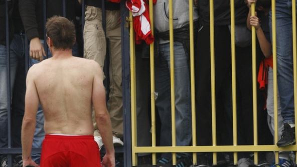 Kako je prenelo list Klarin, navijači su u 60. minutu utakmice ušli u teren i Elijasu Di Bjasiju skinuli dres i šorts, u trenutku kada je njegova ekipa gubila 3:0.