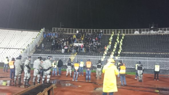 Gostujući navijači, kojih je nekoliko stotina, počeli su da provociraju domaće i pre nego što je utakmica počela.
