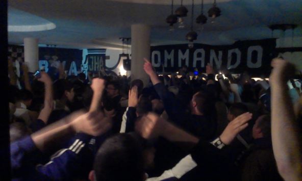 Bubnjar je dao znak, dva puta je lupio i krenulo je: "Stoka, stoka mi smo...", zaorilo se iz restorana, ali je i ispred objekta, u bašti bilo Grobara koji su odlučili da ne ulaze u pakao, jer je unutra bilo 40+ stepeni!