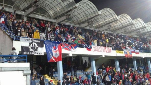 Oko 50 pristalica "zbornaje" pevalo je ruske pesme, a moglo se čuti i skandiranje "Rusija i Srbija, braća zauvek". U jednom trenutku morala je da interveniše i policija, jer su navijači nameravali da zapale zastavu Sjedinjenih Američkih Država, ali su ih u tome sprečili organi reda.
