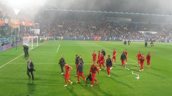 Podsetimo, u prvom minutu utakmice bakljom je pogođen ruski golman Igor Akinfejev, koji je odmah prebačen u bolnicu, a navijač koji ga je pogodio se predao, ali je u međuvremenu pušten da se brani sa slobode.