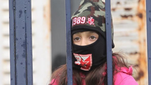 Mala navijačica Crvene zvezde krupnih braon očiju, sa navijačkom fantomkom na glavi, privukla je pažnju prisutnih na Stadionu "Miloš Obilić".